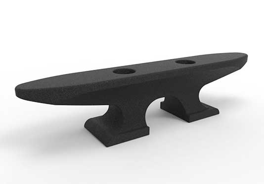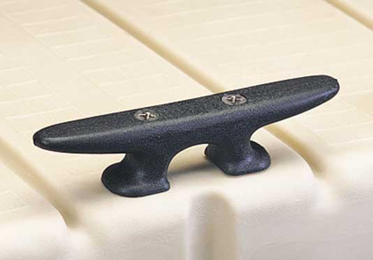 This 8” cleat attaches to heavy-duty stainless steel T-nuts molded in pairs around dock section perimeters.