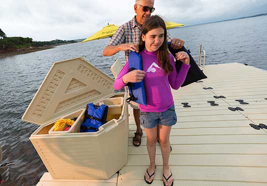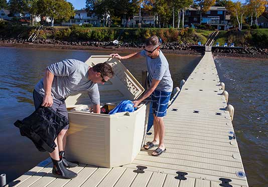 This roomy storage box’s compact design makes the most of available space without interfering with foot traffic. Also available in connection boxes for complete utility hookups.
