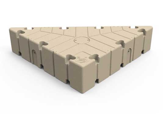 The Tri Dock gives you the ability to create an unparalleled variety of new dock configurations. The inclusion of a pocket allows this new corner to double as a pipe and deadweight bracket for additional anchoring with 750 lbs. weight capacity.